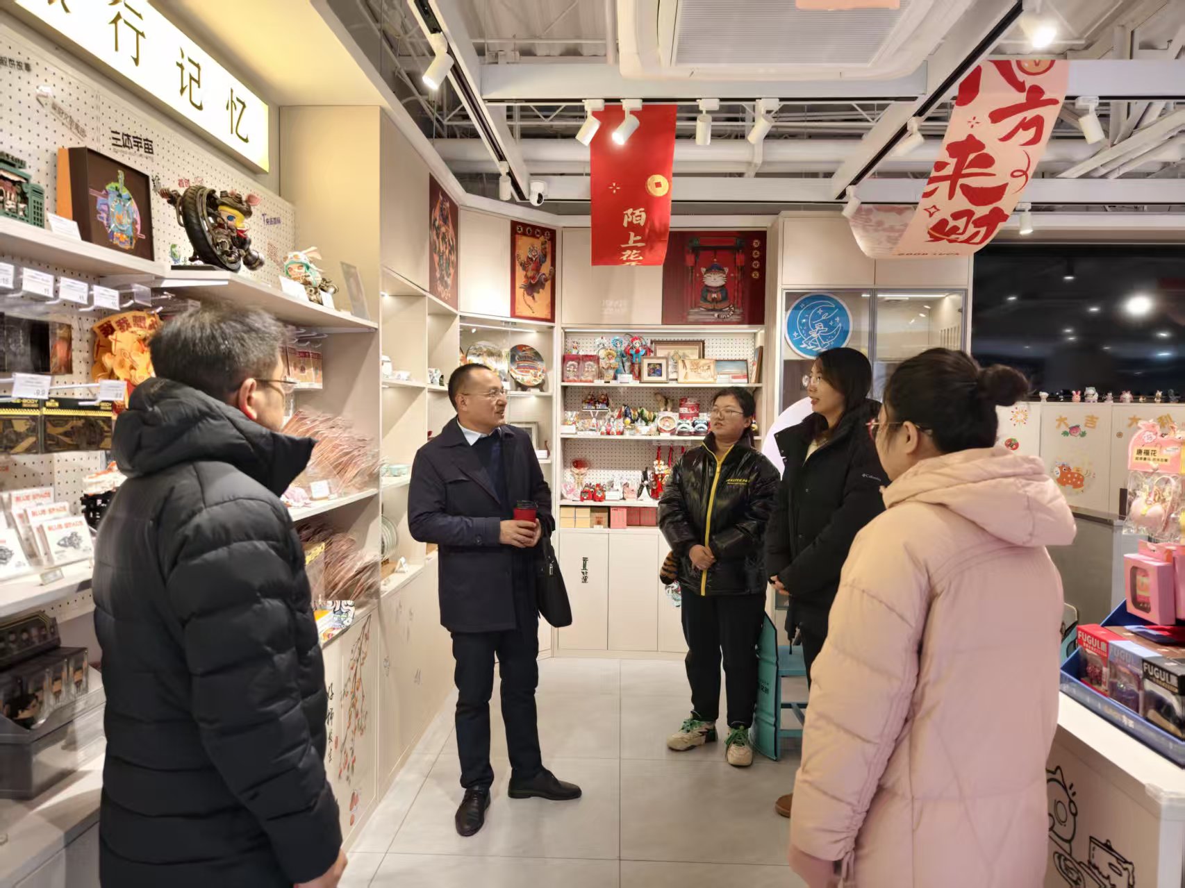 王君刚一行首先参观了潘家园文化街区。北京潘家园旧货市场有限公司副总经理张悦、宋武林陪同参观,详细介绍了街区业态与文化特色,实地感受到传统民间文化市场的蓬勃活力。