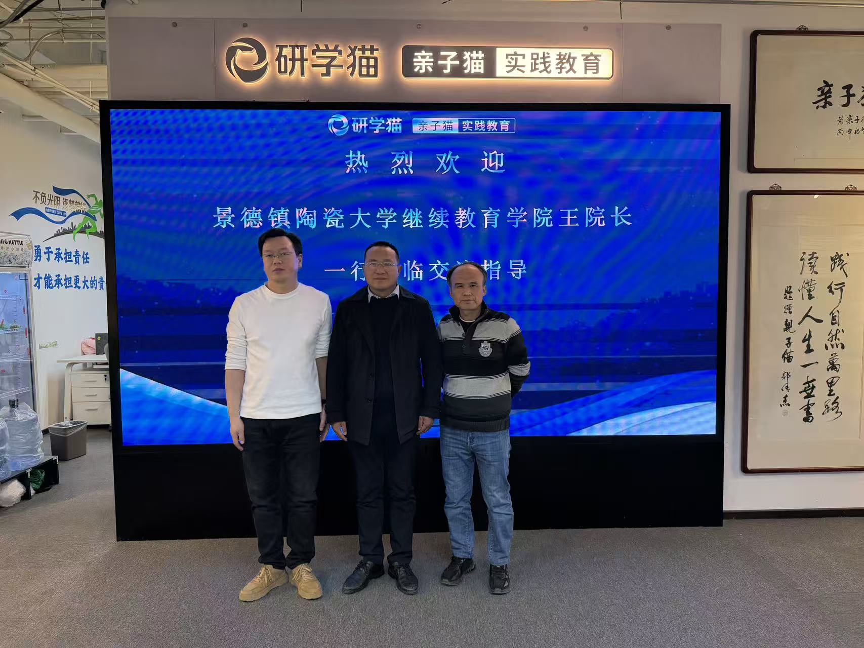 12月16日晚,景德镇陶瓷大学继续教育学院副院长(主持工作)王君刚一行赴京,考察访问亲子猫(北京)国际教育科技有限公司,并与公司总经理魏巴德、市场总监王天亮等举行座谈。双方围绕非遗研学旅行和陶瓷文化传承活化传承深入交流,并达成重要战略合作意向。